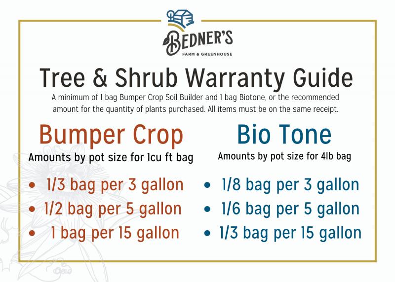 Trees and Shrubs are guaranteed for 1 year from purchase date when purchased with: