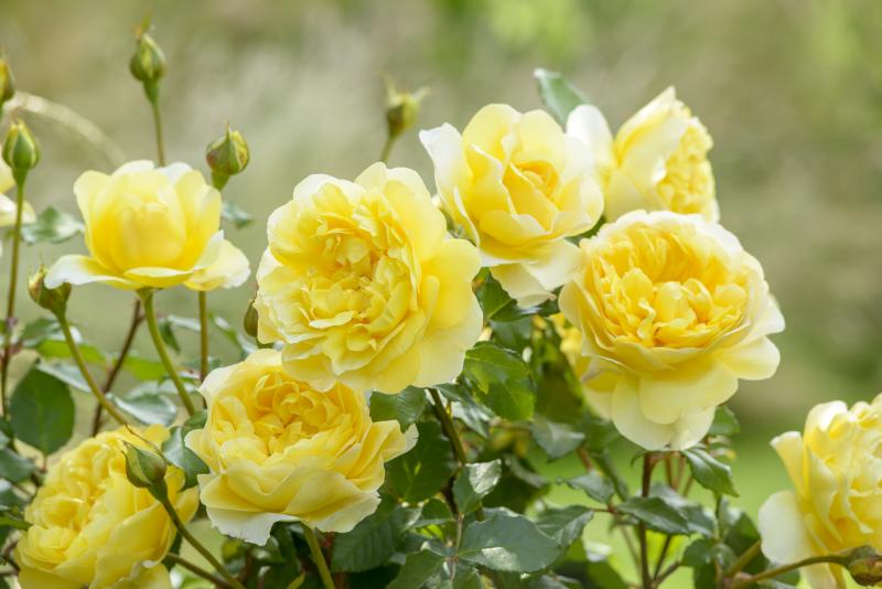Bears rich yellow flowers, which pale over time. Their formation is most pleasing, having a neat outer ring of petals enclosing an informal group of petals within. There is a strong, wonderfully rich fragrance with a hint of lemon, which becomes sweeter and stronger with age. It forms a bushy, nicely rounded shrub with arching branches and rather shiny foliage.