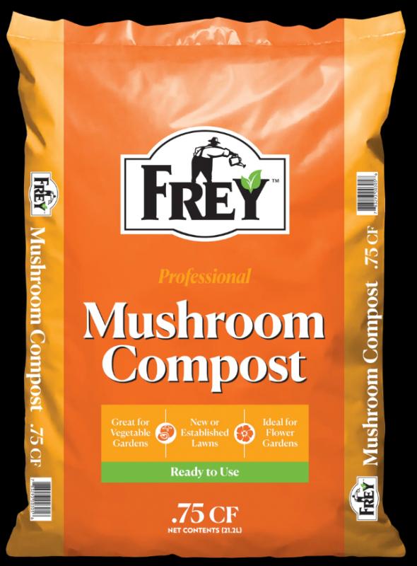 Frey Professional Mushroom Compost can be used to improve soil conditions and optimize your flower and vegetable beds and lawn. Our compost is sourced with repurposed farmed mushroom substrate from Chester County Pennsylvania, an area Long known for the growth of its high-quality mushrooms. The compost is made up of natural materials such as horse manure. bedding and straw. cocoa hulls. poultry manure. gypsum. and corn cobs. This versatile product can be integrated into the soil before planting or applied as a topdressing for established plants. Our Mushroom Compost Blend helps increase moisture retention and adds rich matter back into your soil.