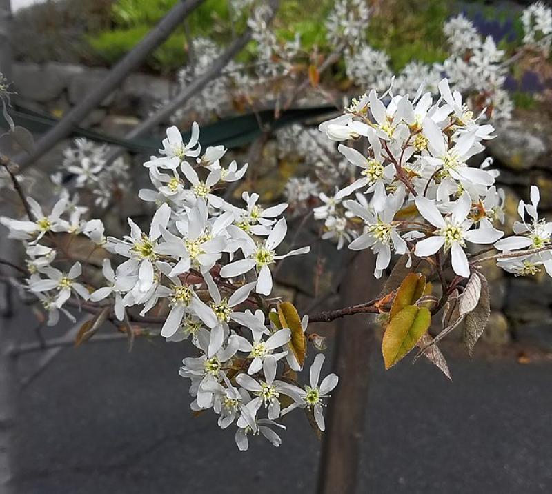 Spring: Masses of delicate white flowers bloom early, attracting bees and other pollinators.