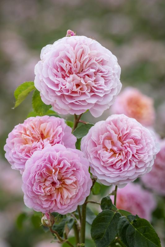 An exceedingly pretty rose of soft, glowing apricot-pink, each bloom packed with numerous delicately ruffled petals. Held on red-tinged stems, the blooms begin as shallow cups, opening to full rosettes, revealing petals of a richer hue, which gradually pale over time. They have a delicious strong fruity fragrance. A very healthy variety; itmakes a strong, vigorous shrub with bushy, upright growth. Named after the flawed heroine of Thomas Hardy’s, The Return of the Native.