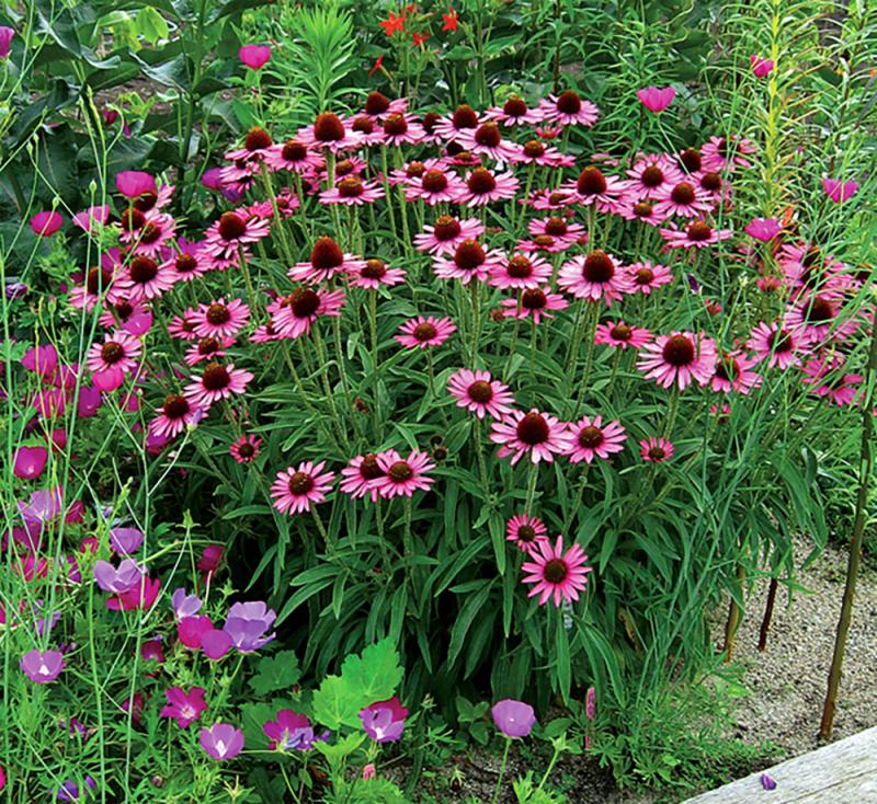 Pixie Meadowbrite is a dwarf hybrid coneflower that has been developed and released by the Chicago Botanic Garden as part of their Meadowbrite Series of coneflowers. Each small daisy-like coneflower features horizontal bright pink ray flowers surrounding a dark center cone. Flowers bloom from June to August, with some sporadic additional bloom into fall. Flowers are mildly fragrant.