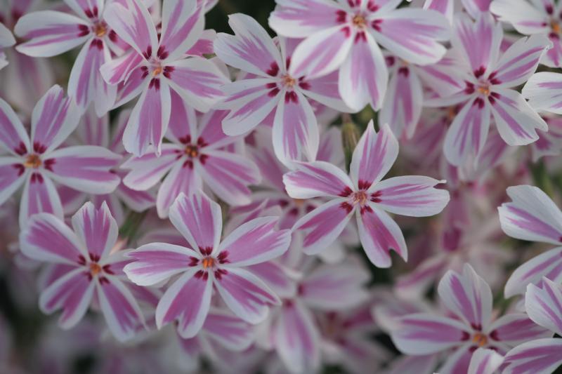 Phlox subulata 'Candy Stripe' is a delightful groundcover that adds a cheerful pop of color to gardens with its soft white blooms accented by bright pink stripes. This low-growing, spreading perennial creates a carpet of vibrant flowers in spring, transforming landscapes into a sea of color. Its semi-evergreen foliage, a mat of needle-like green leaves, keeps gardens looking lush year-round, even when not in bloom.