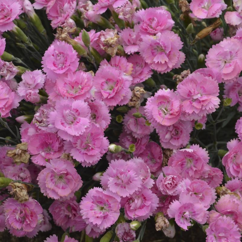 Members of the Dianthus FRUIT PUNCH® series share the following traits: semi to fully double, fragrant flowers, and good heat and humidity tolerance. Flowers appear in early summer, and a quick shearing after flowering will encourage them to rebloom in early fall. FRUIT PUNCH® Dianthus are just the right size to edge the front of the sunny border and use in combination containers.