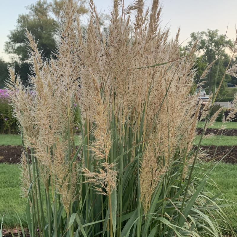 A native selection with vertical landscape application comparable to Calamagrostis 'Karl Foerster'; however GOLDEN SUNSET® stands taller at 5-6' and flowers much later in the season. Wide leaves form a solid base with long golden seedheads rising above the plant in late summer. Wheat-like seedheads reach 10-12" in length and hold their form, adding winter interest.
