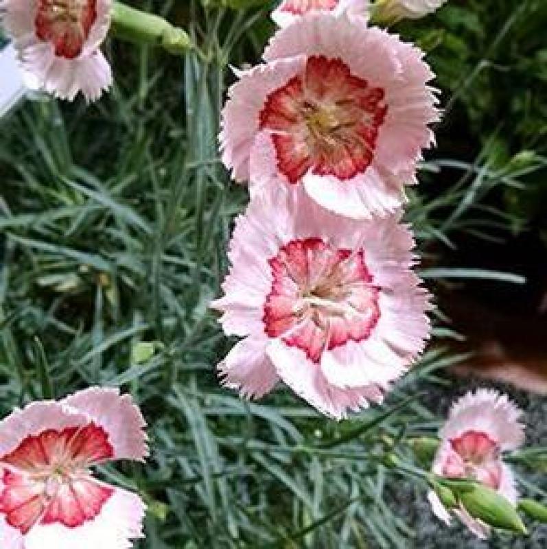Dianthus American Pie Georgia Peach Pie serves up a feast of beauty and charm with its luscious, soft peach-pink blooms and delicate coral center. These large, intricately patterned flowers bloom abundantly from late spring through summer, creating a romantic, vintage-inspired display in gardens and containers alike. The flowers’ sweet clove-like fragrance adds a sensory delight to your outdoor space while attracting pollinators like bees and butterflies.