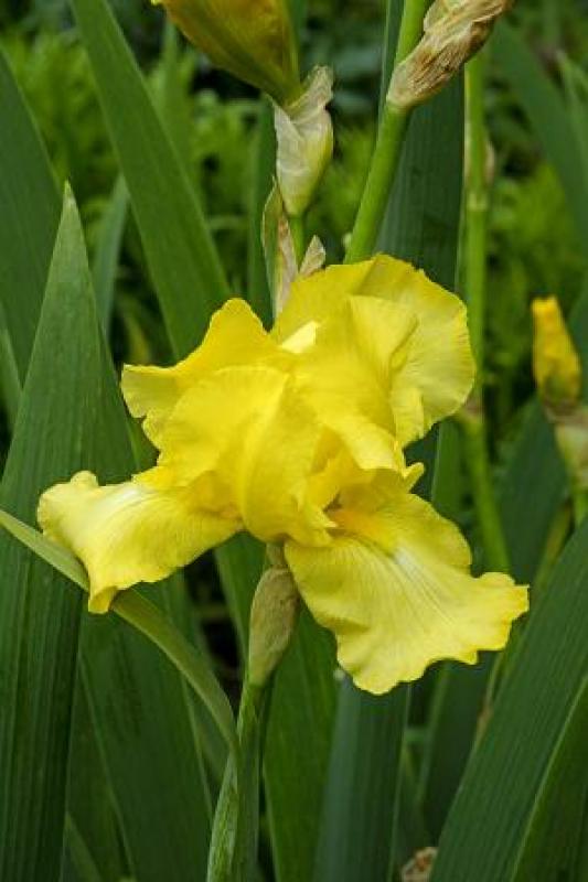 Reblooming iris with golden yellow blooms. Midseason bloom